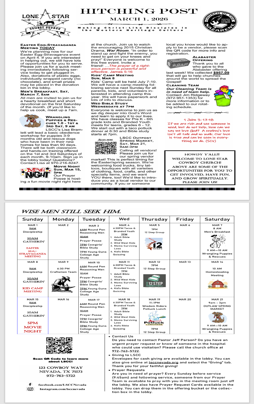 Welcome To Lone Star Cowboy Church of Nevada TX LSCC Sunday Service 10:00am